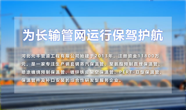 綜合性研發型服務企業河北元豐管道工程有限公司是一家專注生產鋼套鋼蒸汽保溫管、聚氨酯預制直埋保溫管、噴涂纏繞預制保溫管、鍍鋅鐵皮架空保溫管、PERT-Ⅱ型保溫管、保溫管件及補口安裝的綜合性研發型服務企業。 了解詳情 +